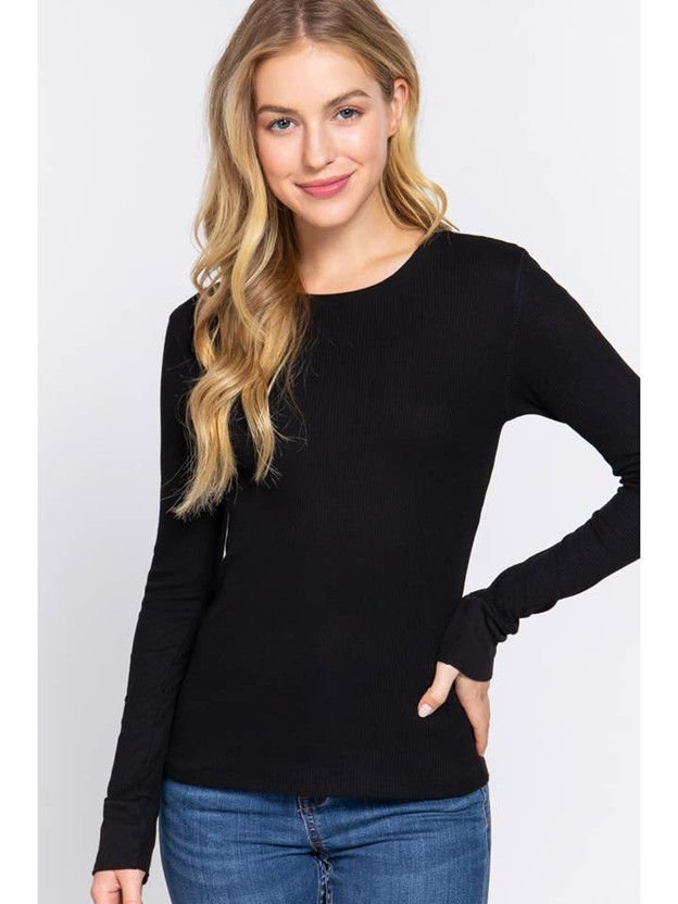 LONG SLEEVE CREW NECK THERMAL KNIT TOPFABRIC: THERMAL58% COTTON 39% POLYESTER 3% SPANDEX
