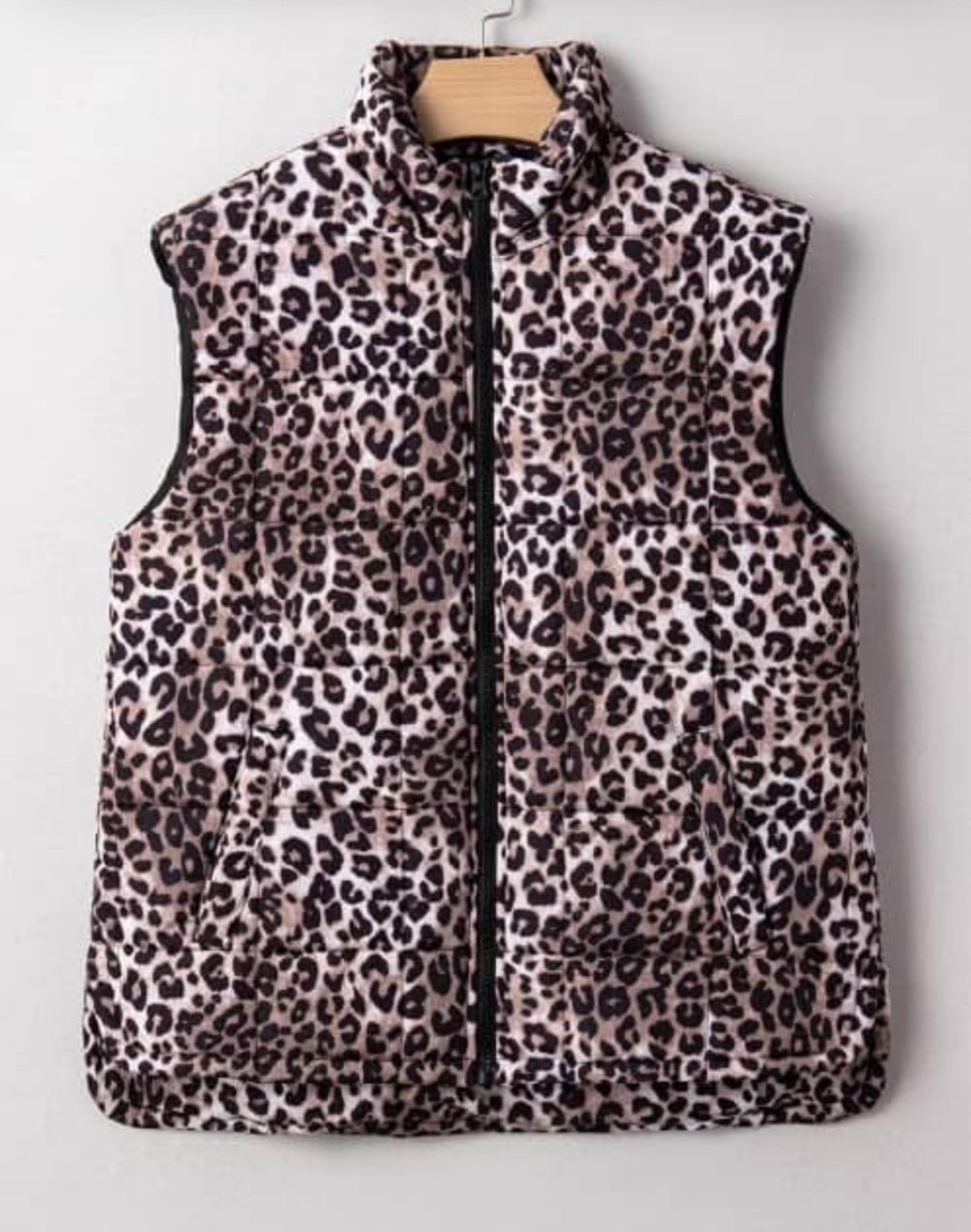 Stay warm and on-trend with the Brown Leopard Quilted Vest. Its full-zip design offers easy wearability, while the quilted pattern keeps inner padding securely in place for lasting comfort. Stylish side slits add a unique touch, making this vest a chic and practical addition to your wardrobe.