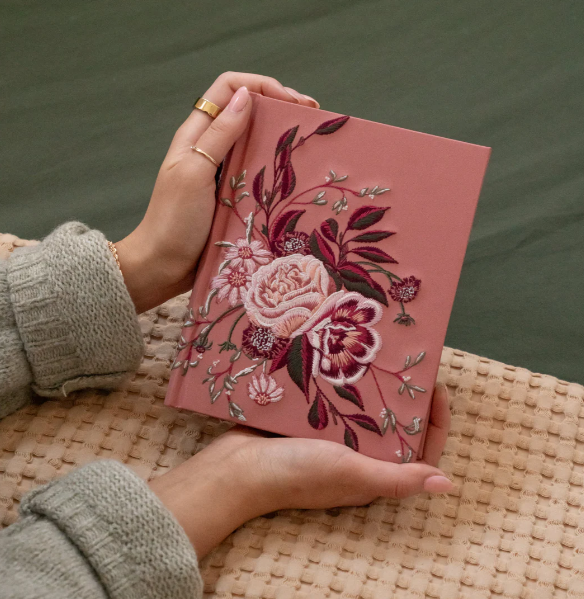 This CSB Bible features a front covered with lush pink and red embroidered roses. The back of this Bible features the verse Isaiah 40:8, “The grass withers, the flowers fade, but the word of our God remains forever.” This reminds us that, compared to the Lord’s most glorious creations, nothing endures like his everlasting Word and the truth that reigns over our hearts. We pray that this Bible will usher in beauty and the abundantly rich love that God has for you as you engage in Scripture.