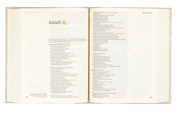 The muted, light colors of this Bible mix a little icy winter with beautiful spring florals. The front cover of this Bible says “The Word of God,” and the back cover reminds us of our freedom in Christ: “So if the Son sets you free, you will be free indeed” (John 8:36). Our prayer for this Bible is that each time you open it, you will be reminded of your freedom in Christ and that his Word will inspire and challenge you to walk in that freedom for his glory and your eternal good.