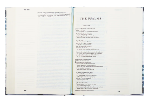 This beautiful large print ESV Single Column Journaling Bible® is named Victoria, inspired by the natural eucalyptus and blooms of Victoria, Australia. We are so excited to offer this beautiful floral Bible for those who prefer larger-printed text with a refreshed design!