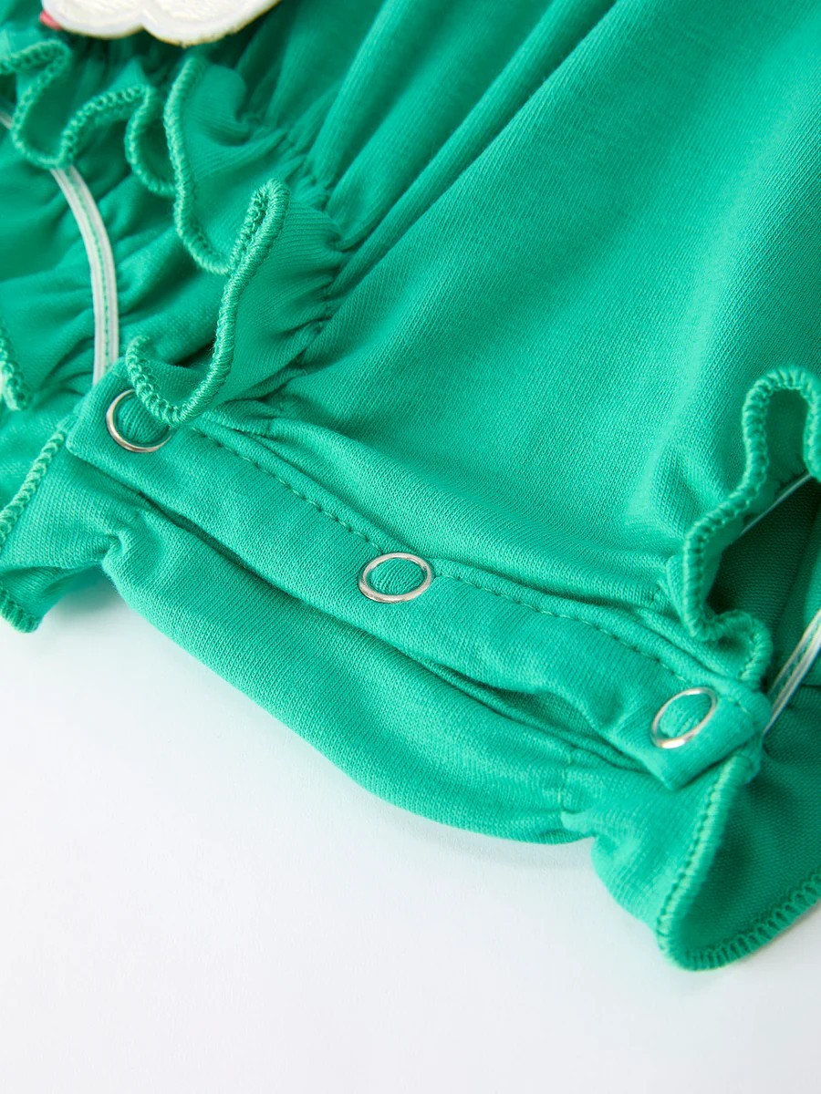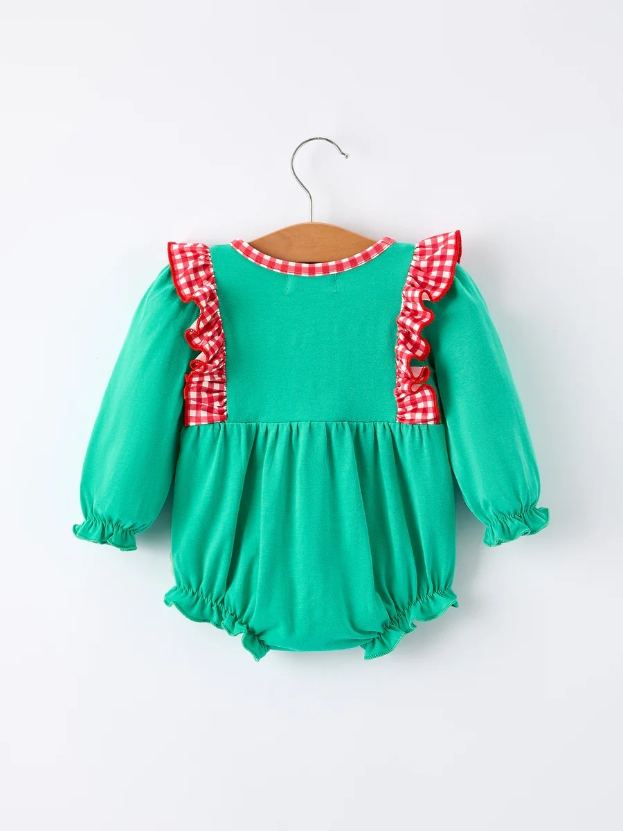 Make your baby girl’s holiday season extra special with this adorable Christmas romper. Featuring a charming Santa applique and a classic red plaid bow, it combines festive style with cozy comfort. Perfect for holiday parties and photo sessions, this romper ensures your little one looks joyful and merry all season long.