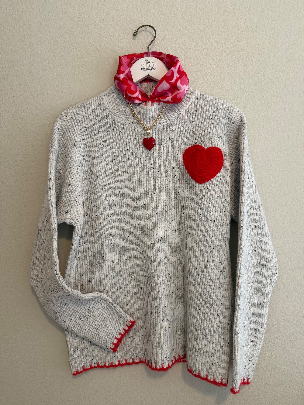 Chunky link textured chain with red enameled heart!
